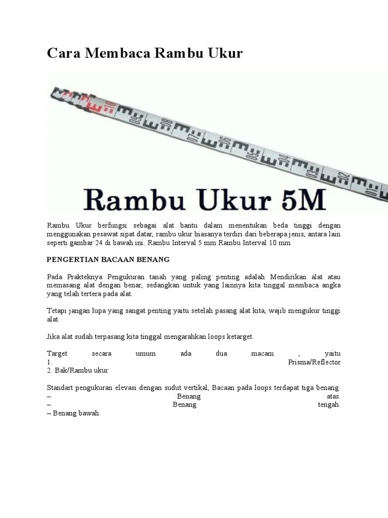 Rambu ukur dan cara pembacaannya.