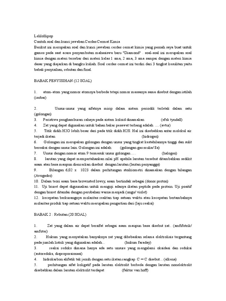 Contoh Soal Kimia Sma : Soal Soal Kimia Kelas X Beserta Pembahasannya Pdf - Perhatikan notasi atom 2 buah unsur berikut:.