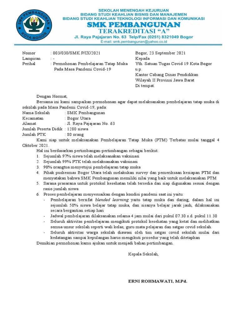 1.surat edaran kementrian pendidikan dan kebudayaan republik indonesia no. Menulis manual (tulis tangan) sesuai . Disdik kota pekanbaru mewajibkan orang tua murid membuat surat pernyataan sebagai bentuk kesediaan anaknya mengikut sekolah tapa muka. Jika permohonan tersebut diizinkan maka sekolah di kota tegal dapat memulai simulasi ptm di awal bulan september. Menyampaikan surat permohonan pembelajaran tatap muka kepada bupati maros melalui kepala dinas pendidikan .